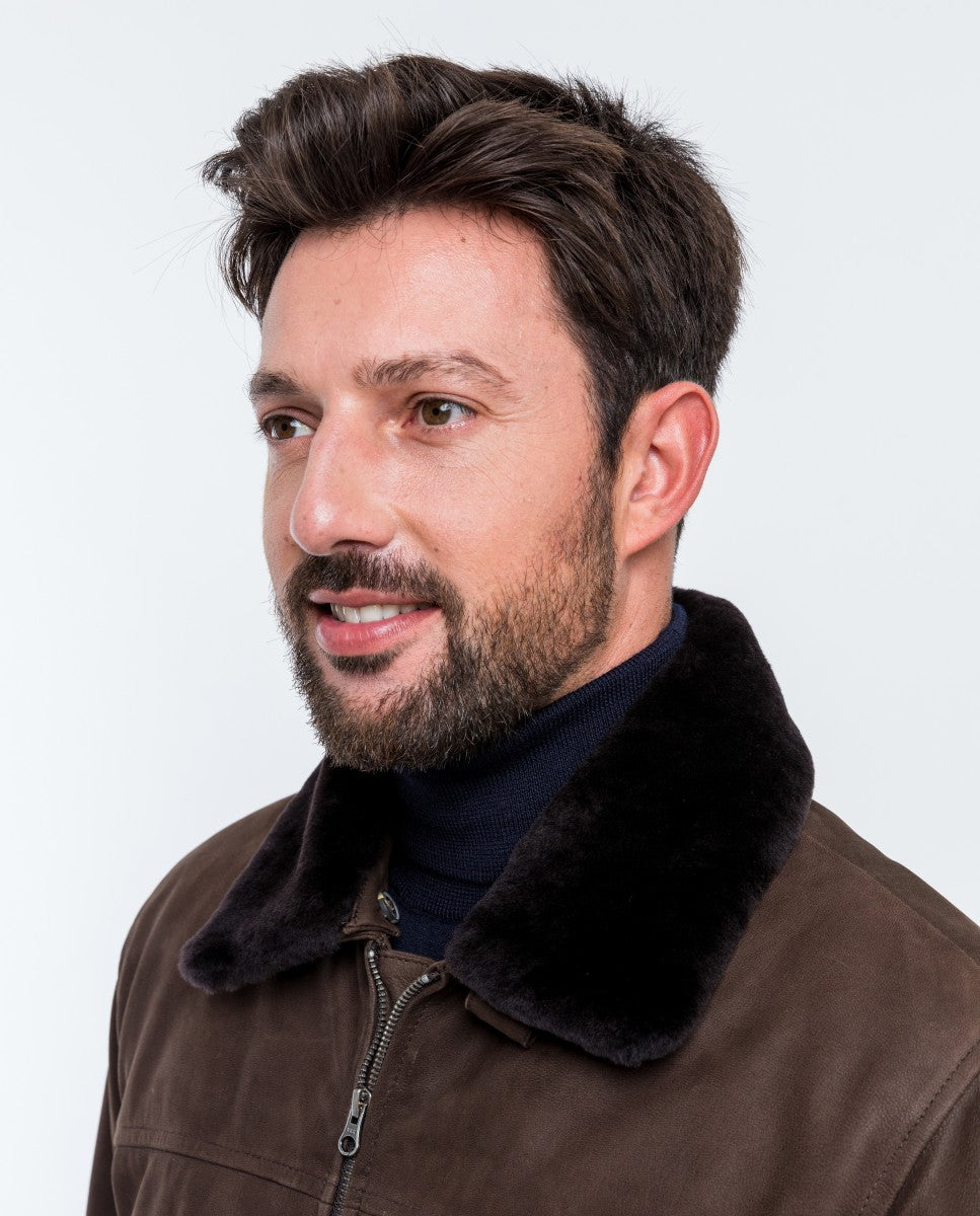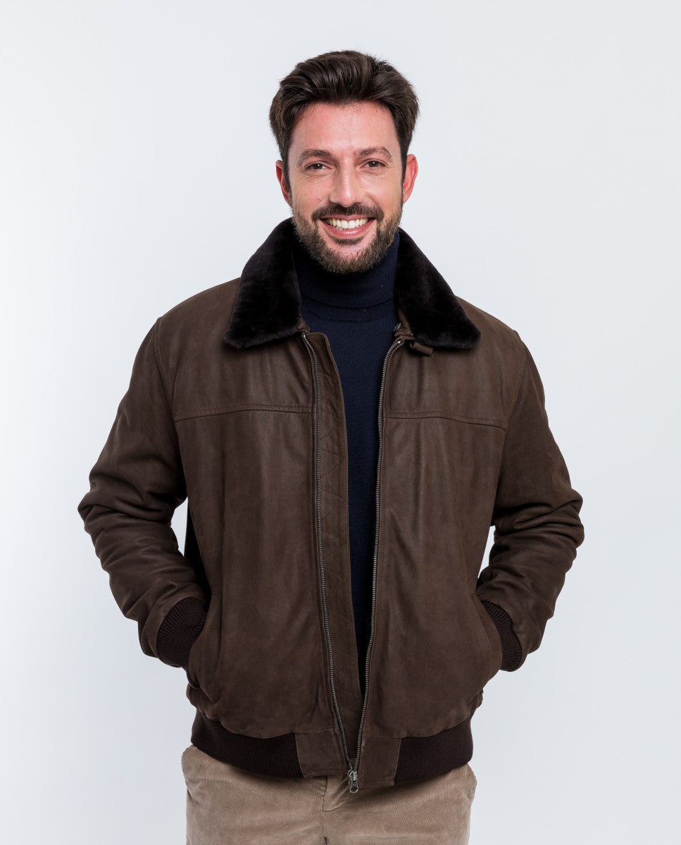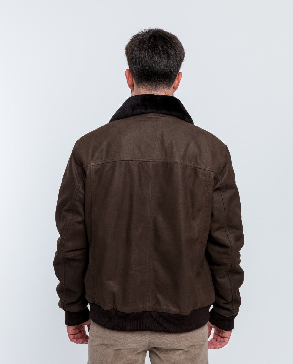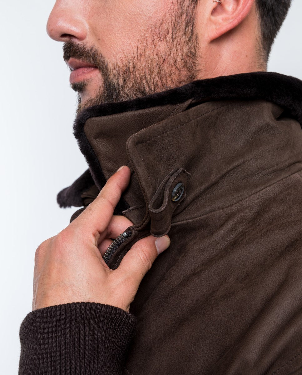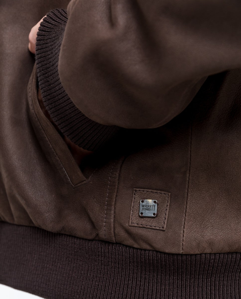 Blusão 100% Pele em Castanho Escuro