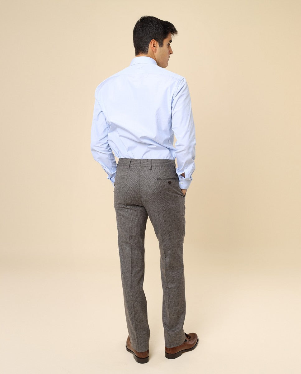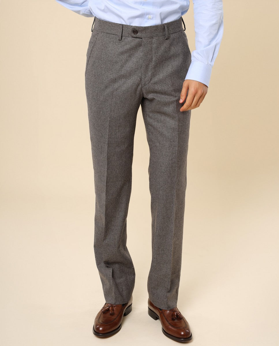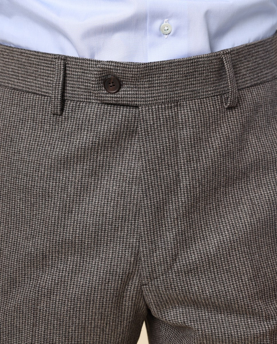 Calças Clássicas Regular 100% Lã Virgem em Castanho Escuro