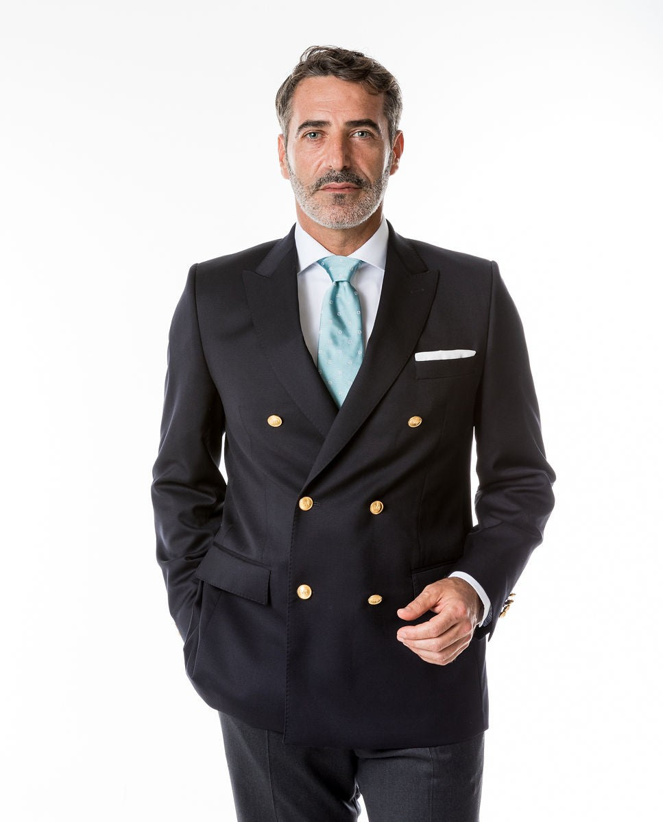 Blazer clássico assertoado, com botões dourados. Uma peça essencial no guarda-roupa de um cavalheiro.