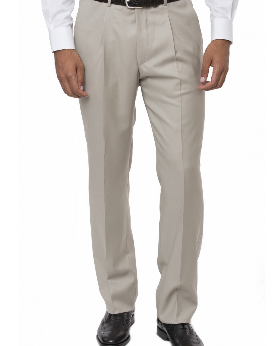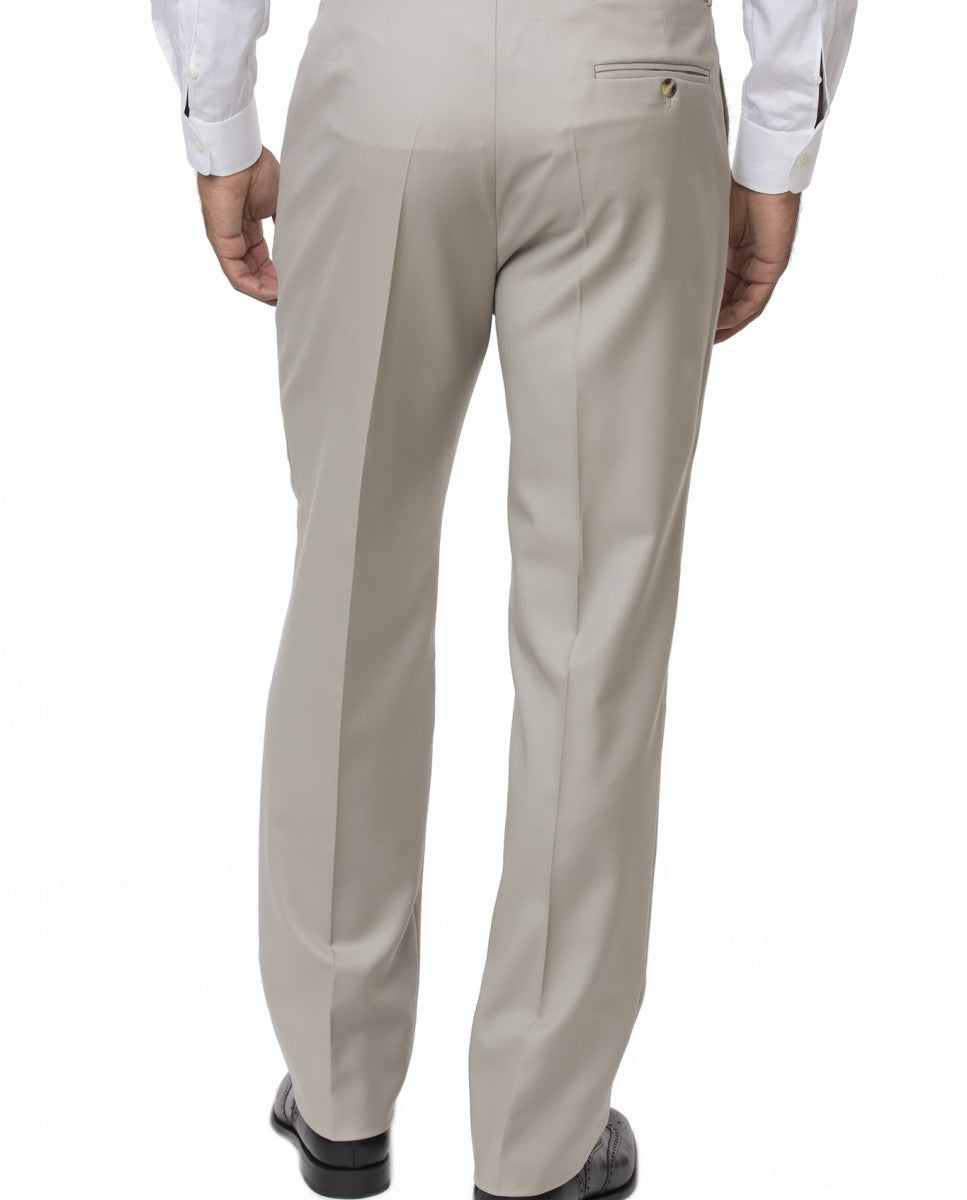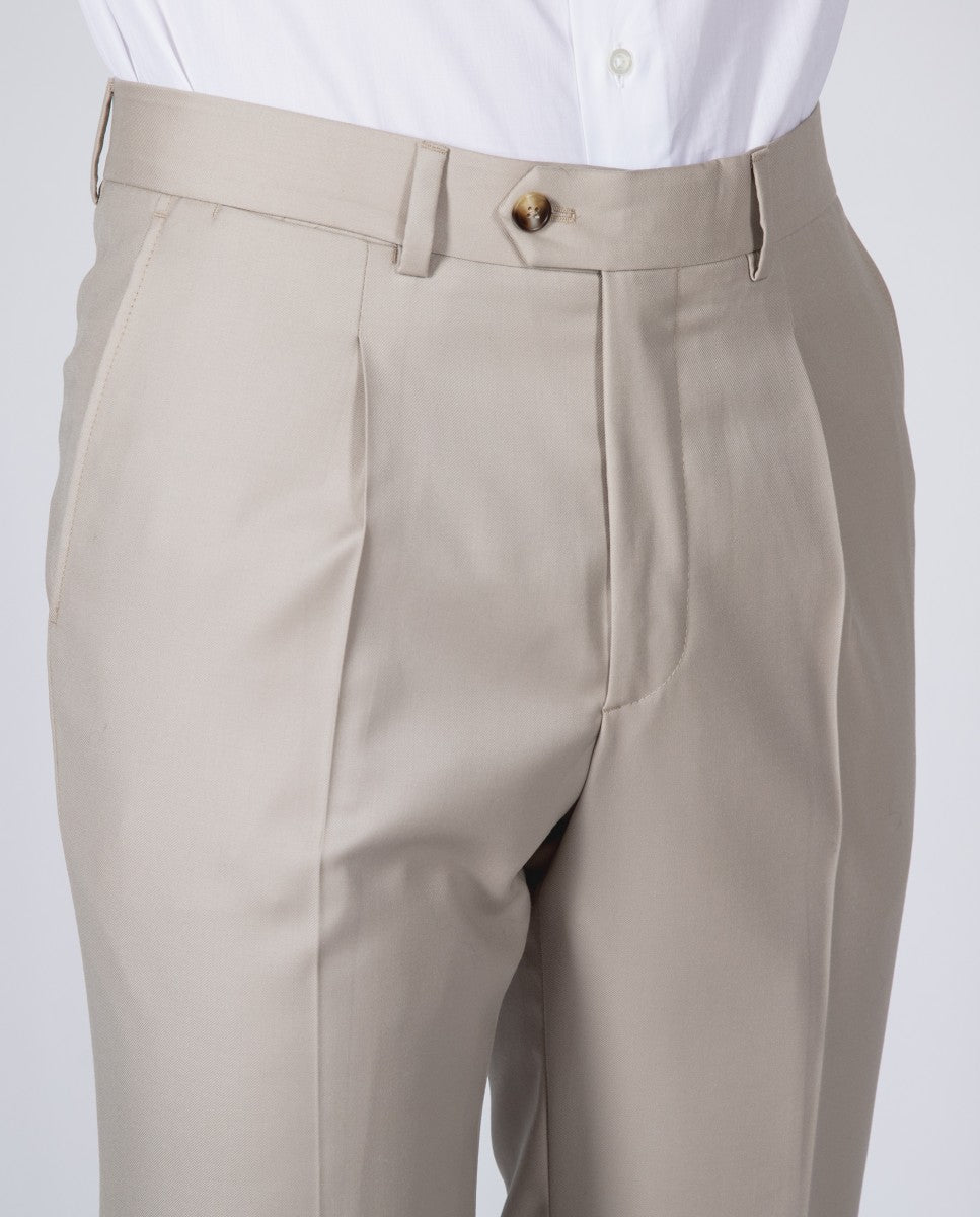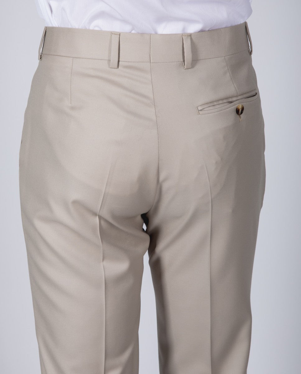 Calças Clássicas Regular 100% Lã em Cor de Areia Escuro