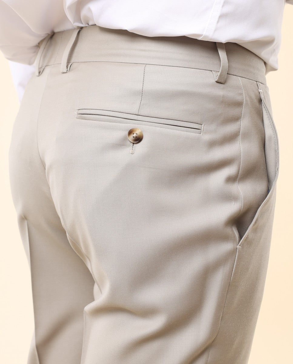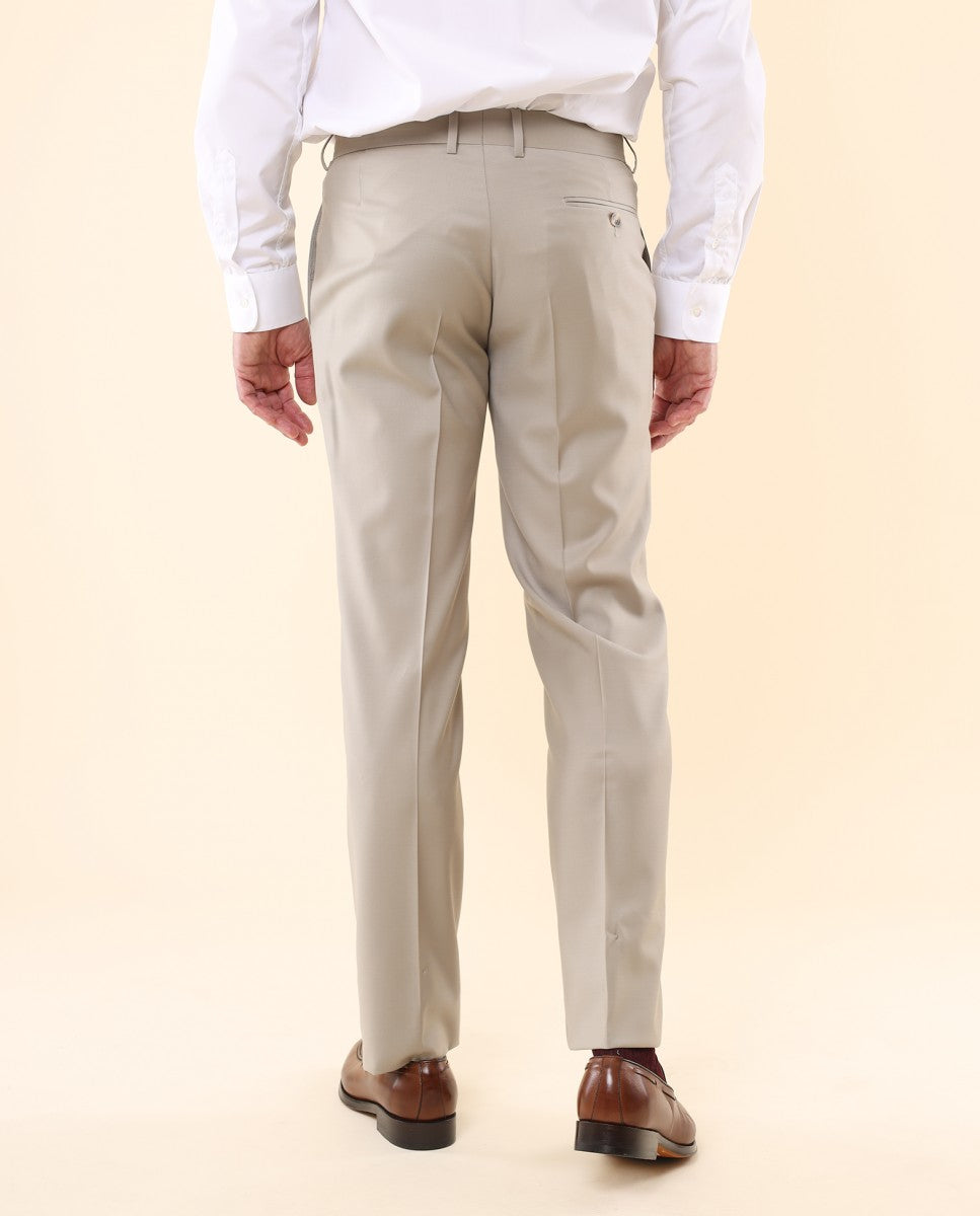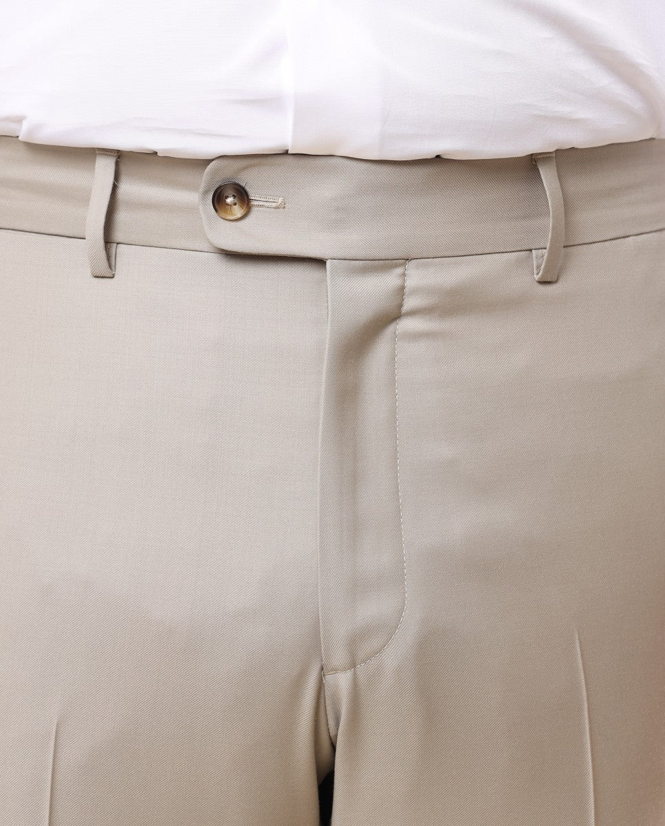 Calças Clássicas Regular 100% Lã Virgem em Bege Claro