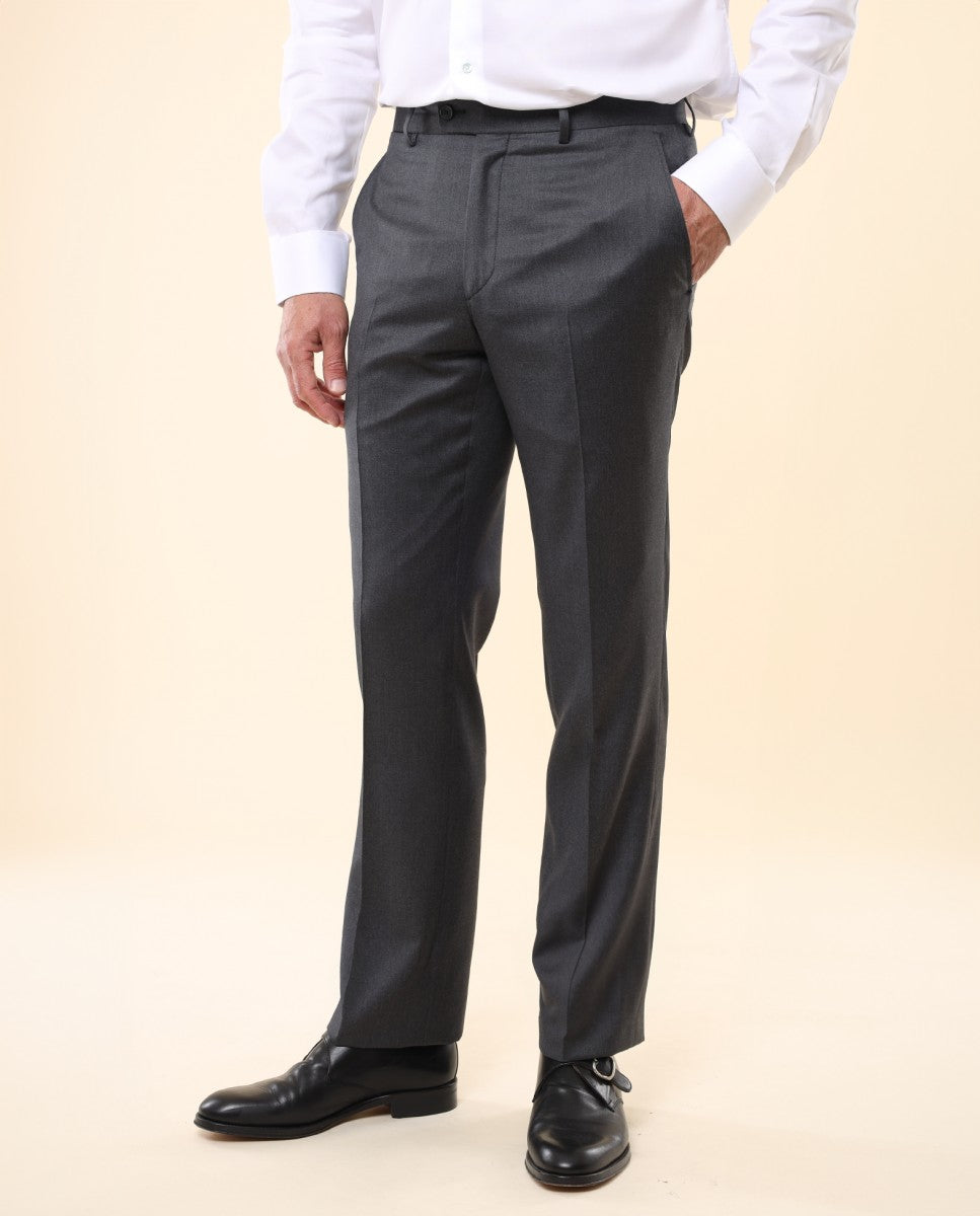 Calças Clássicas Regular 100% Lã Virgem em Cinzento