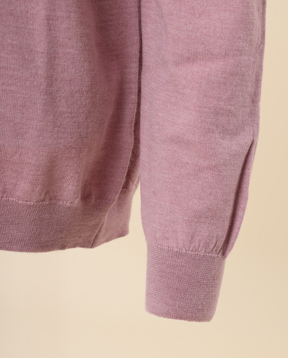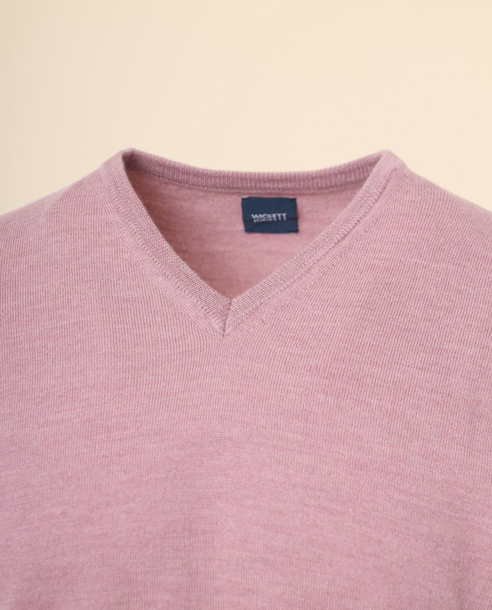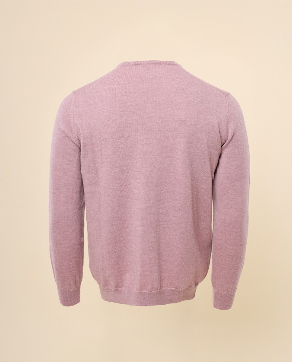 Camisola Decote em V 100% Lã Merino em Cor-de-rosa Claro
