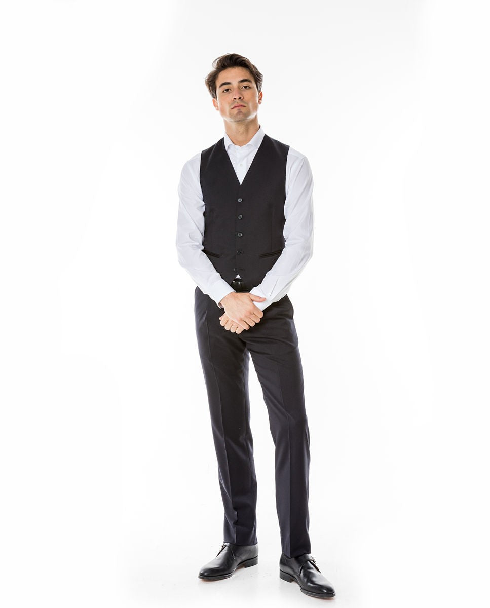 Colete 100% Lã Liso em Azul Escuro