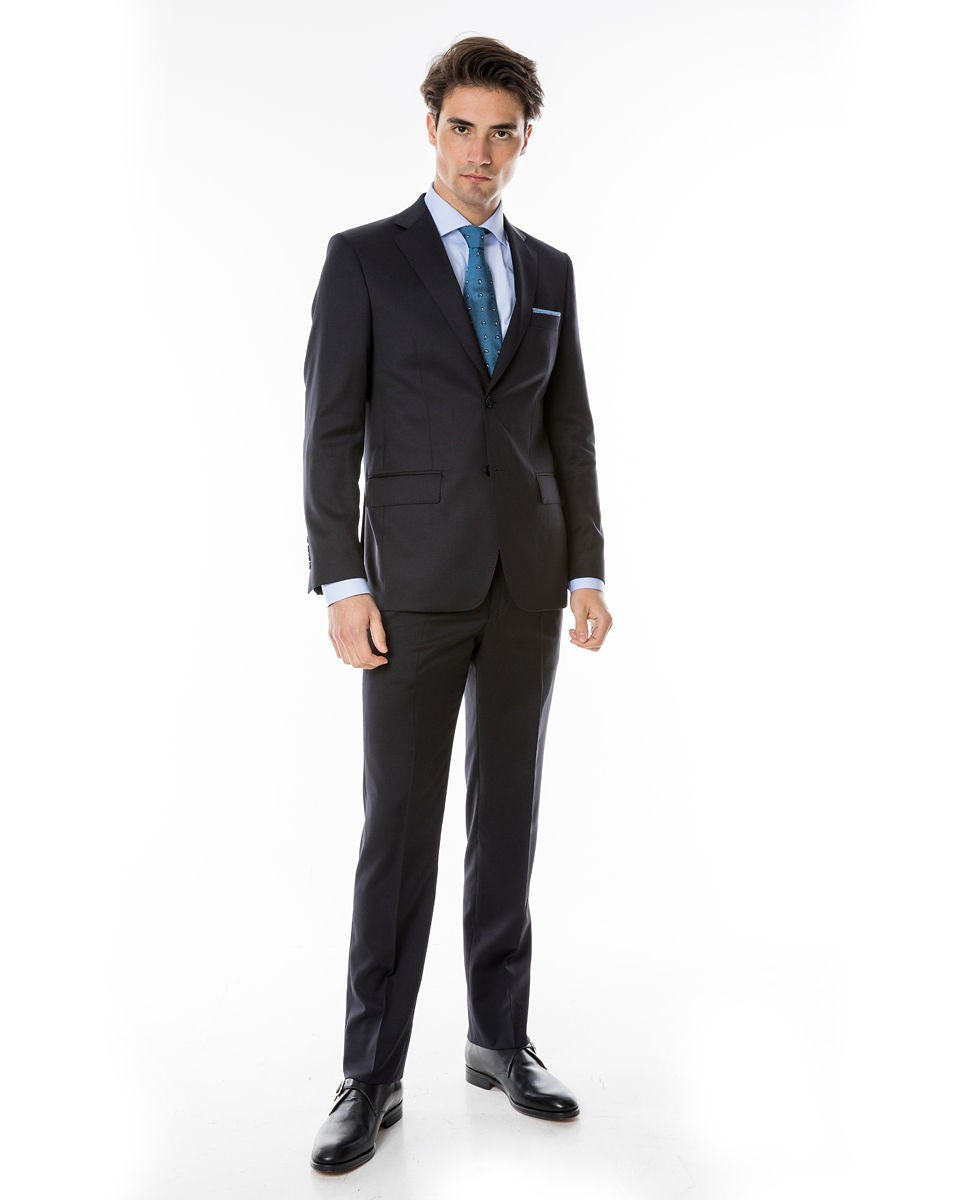 Fato Regular 100% Lã Virgem Liso em Azul Escuro