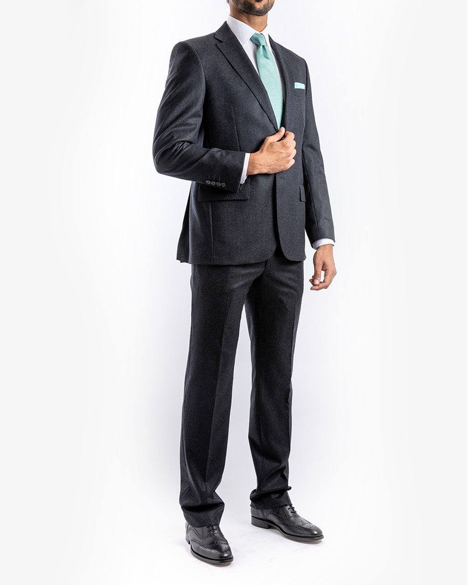 Fato Regular 100% Lã Virgem Liso em Cinzento Escuro
