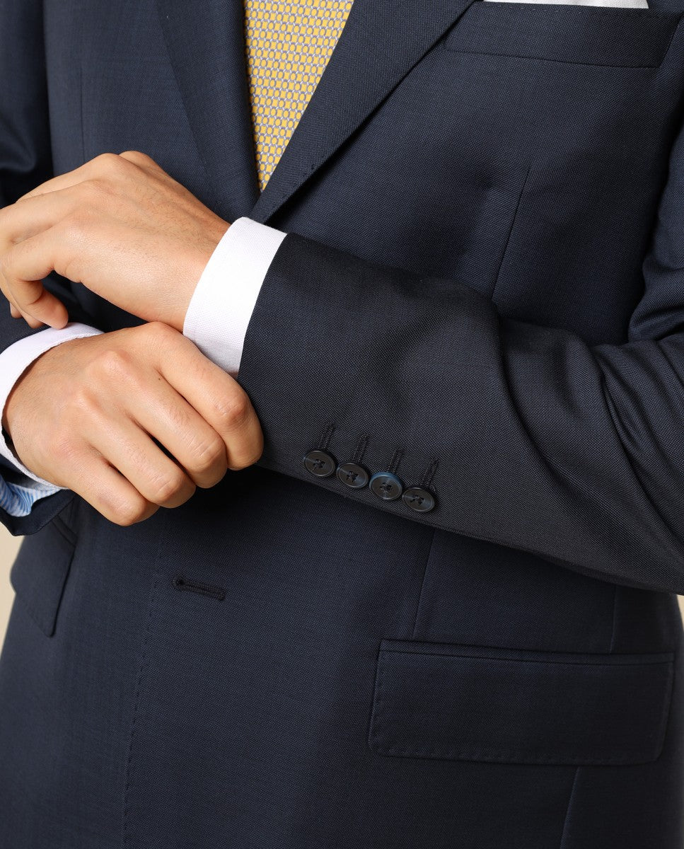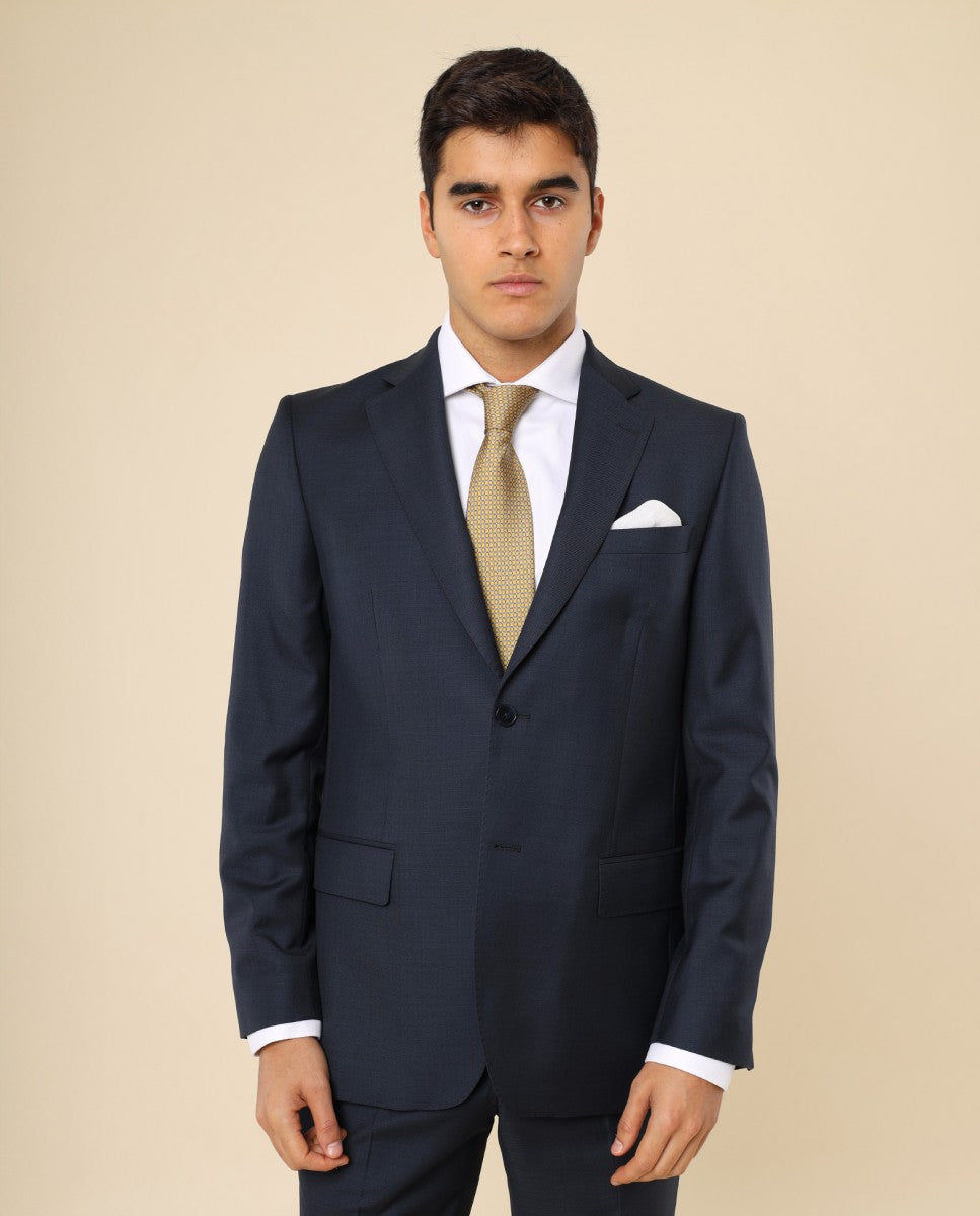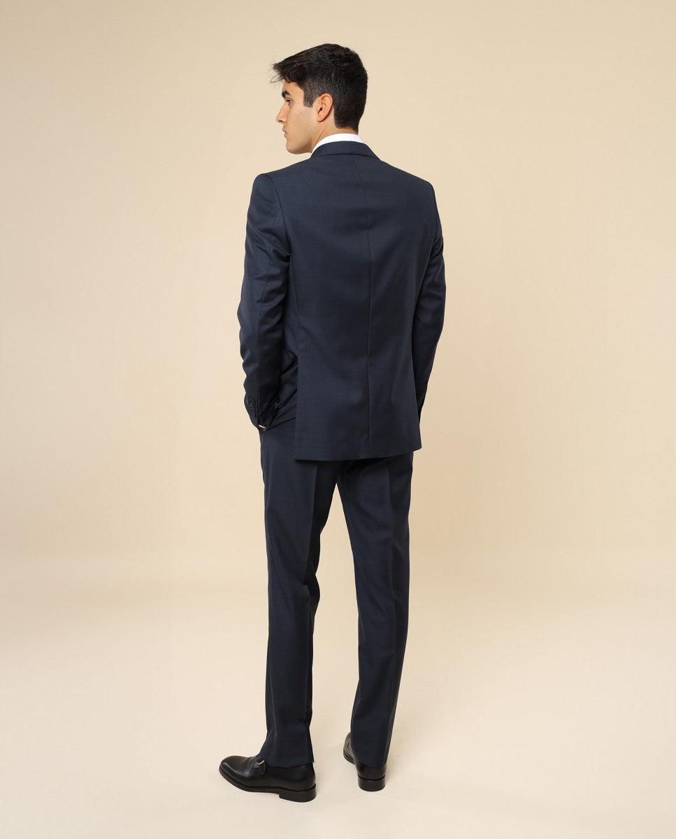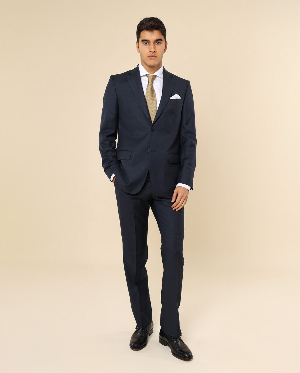 Fato Regular 100% Lã Falso Liso em Azul Escuro