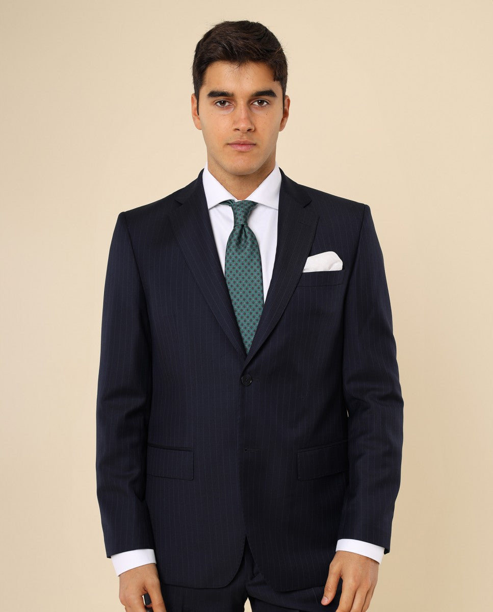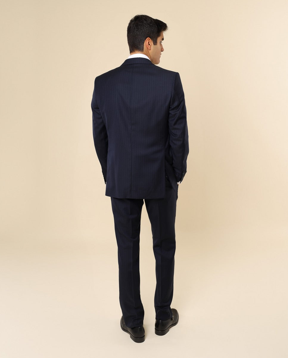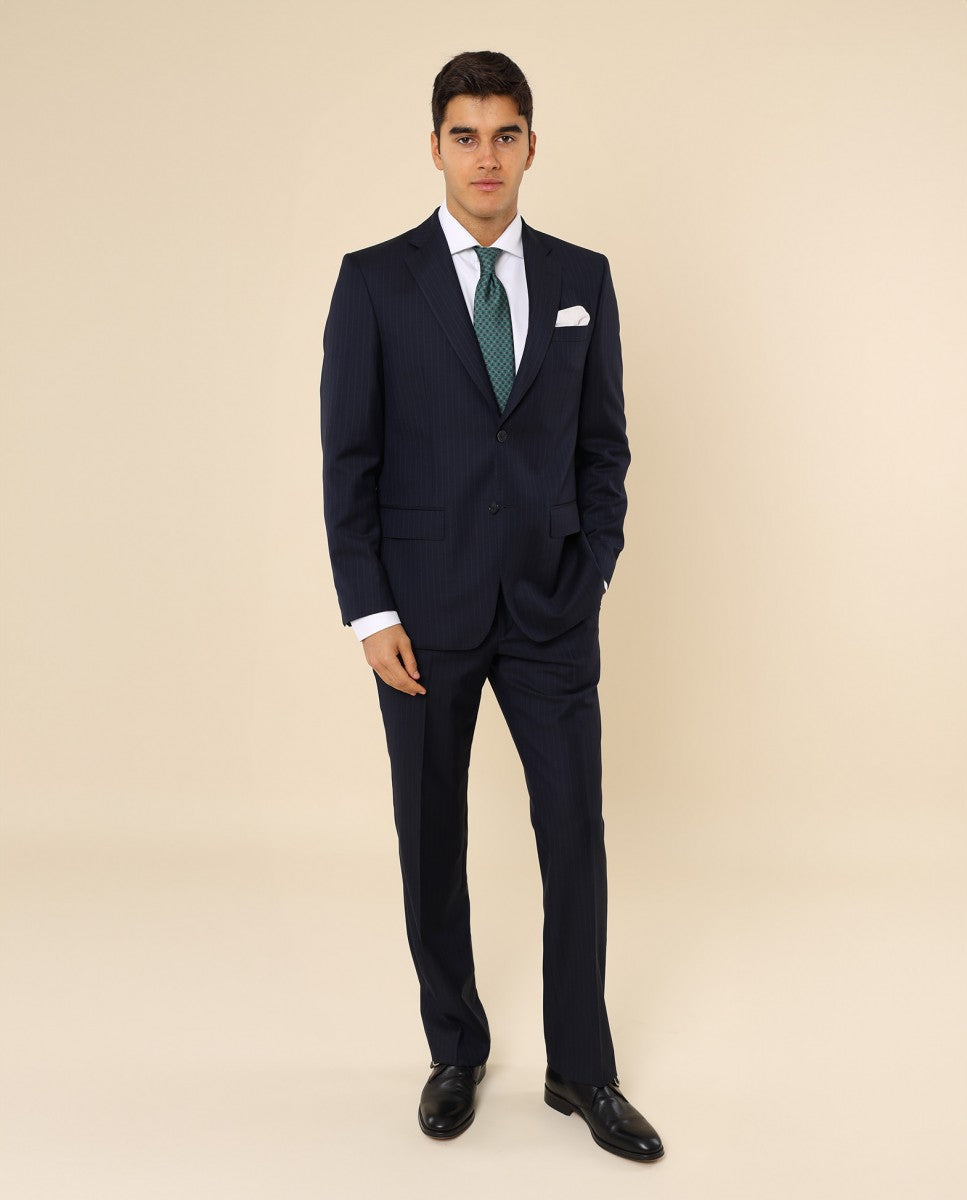 Fato Regular 100% Lã Riscas em Azul Escuro