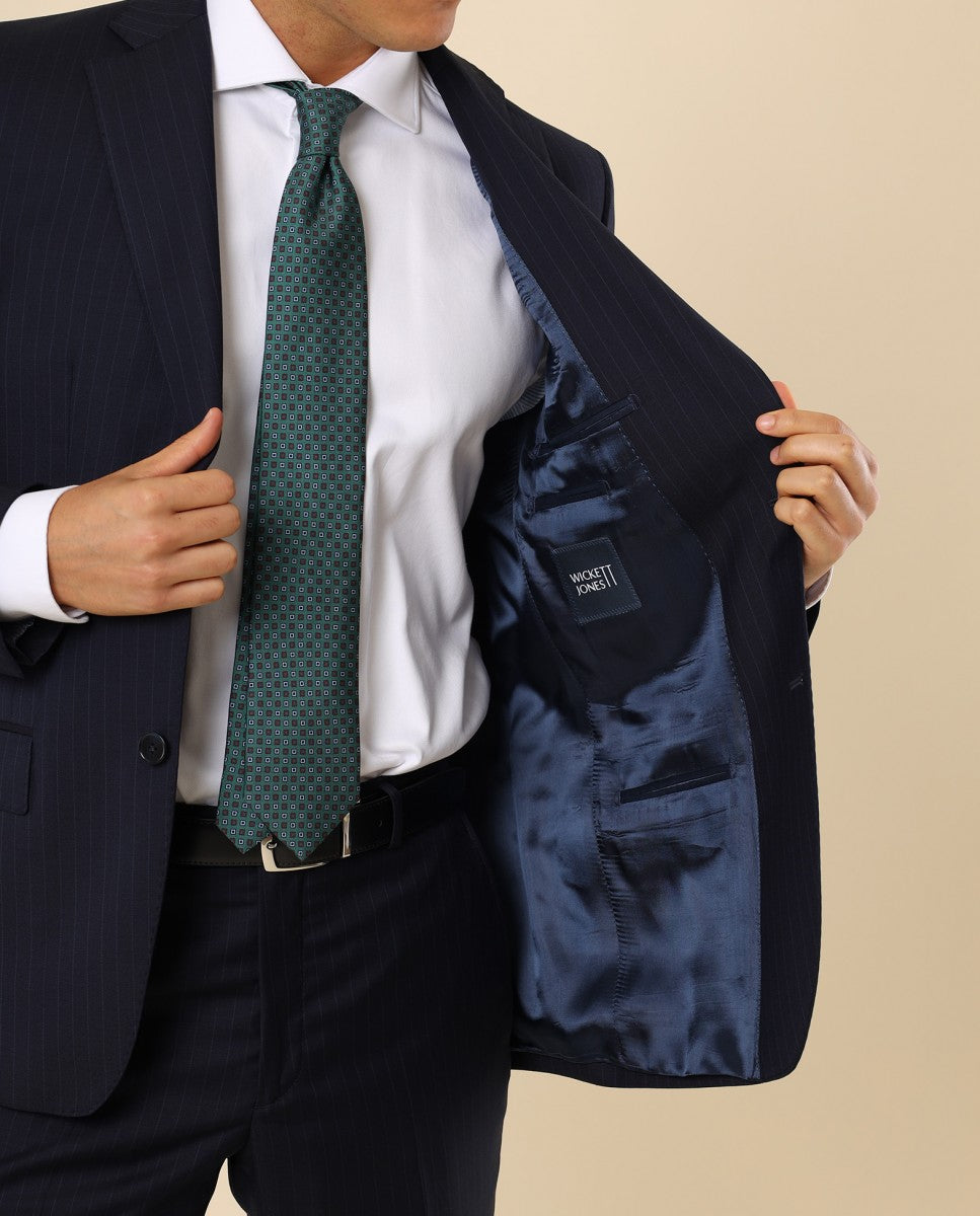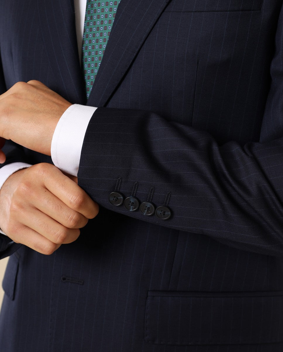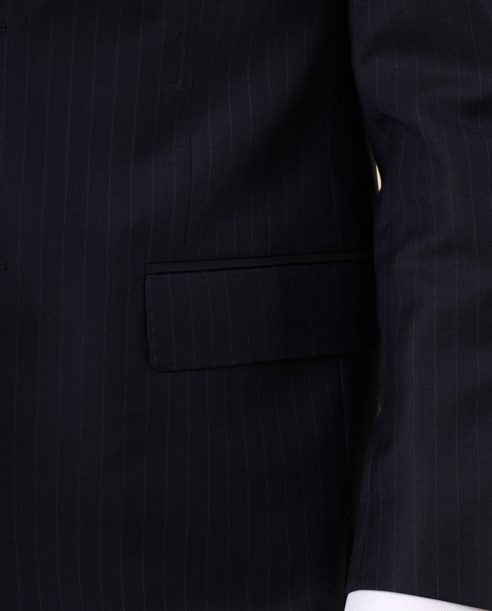 Fato Regular 100% Lã Riscas em Azul Escuro