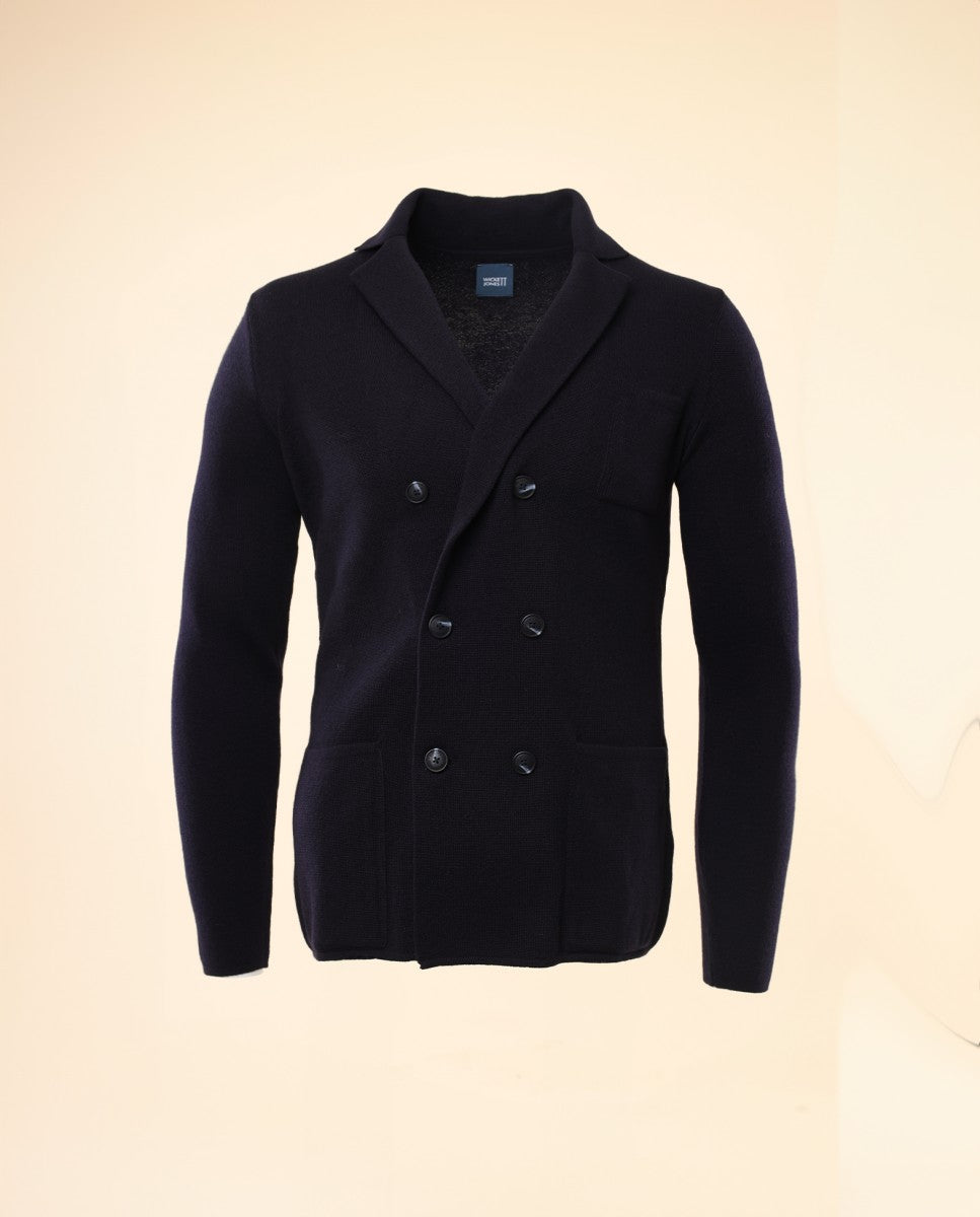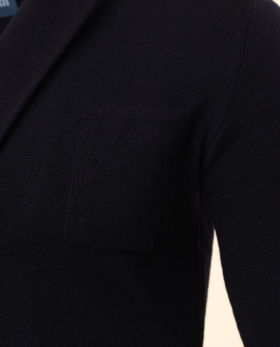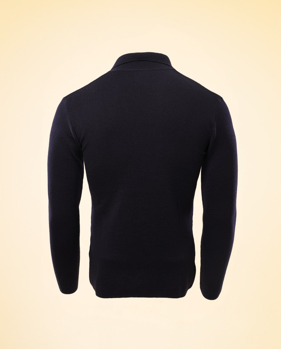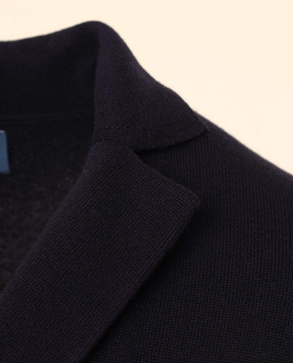 Casaco de Malha 100% Lã Merino em Azul Escuro