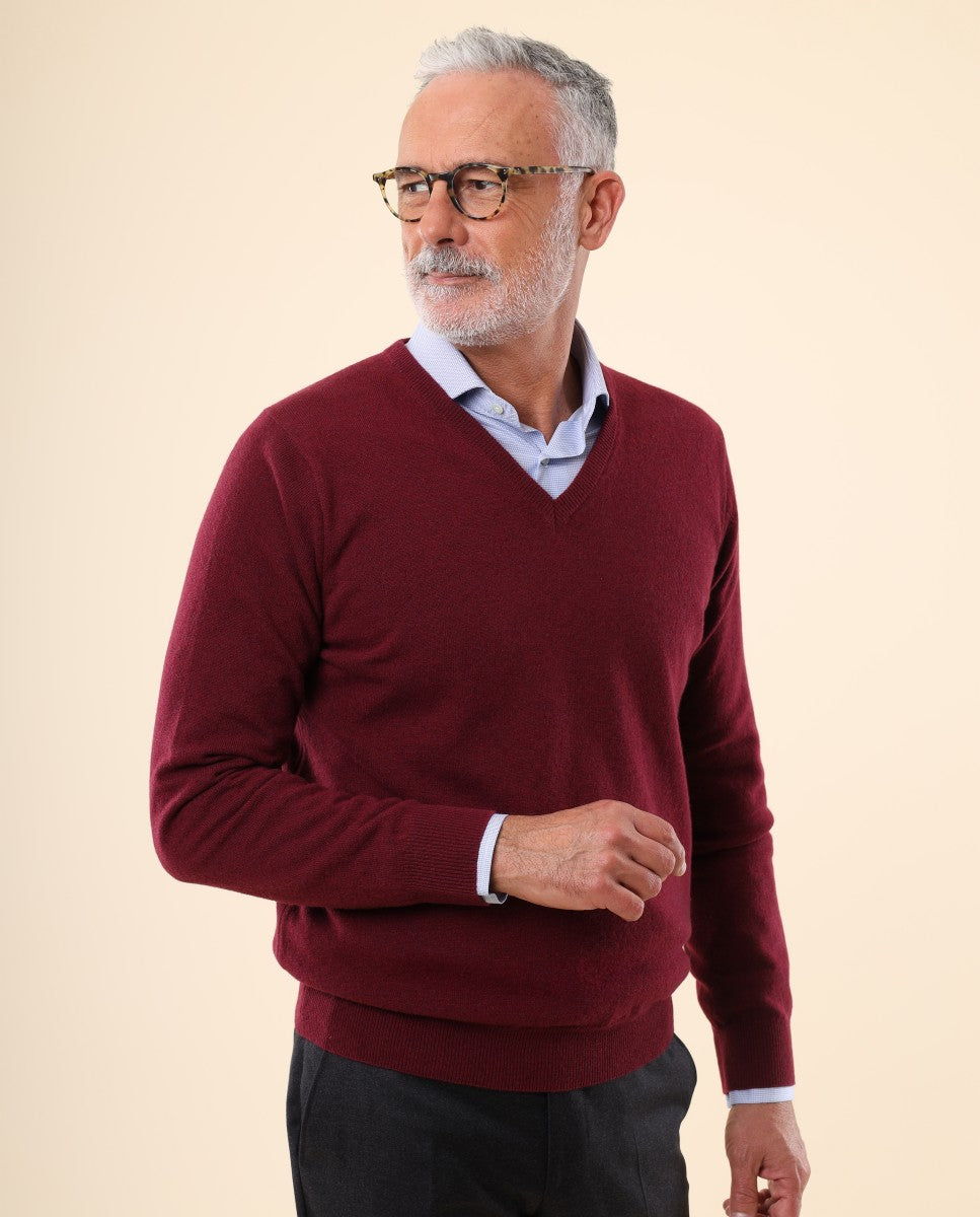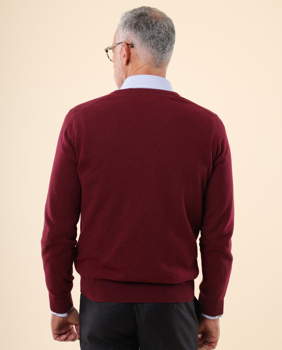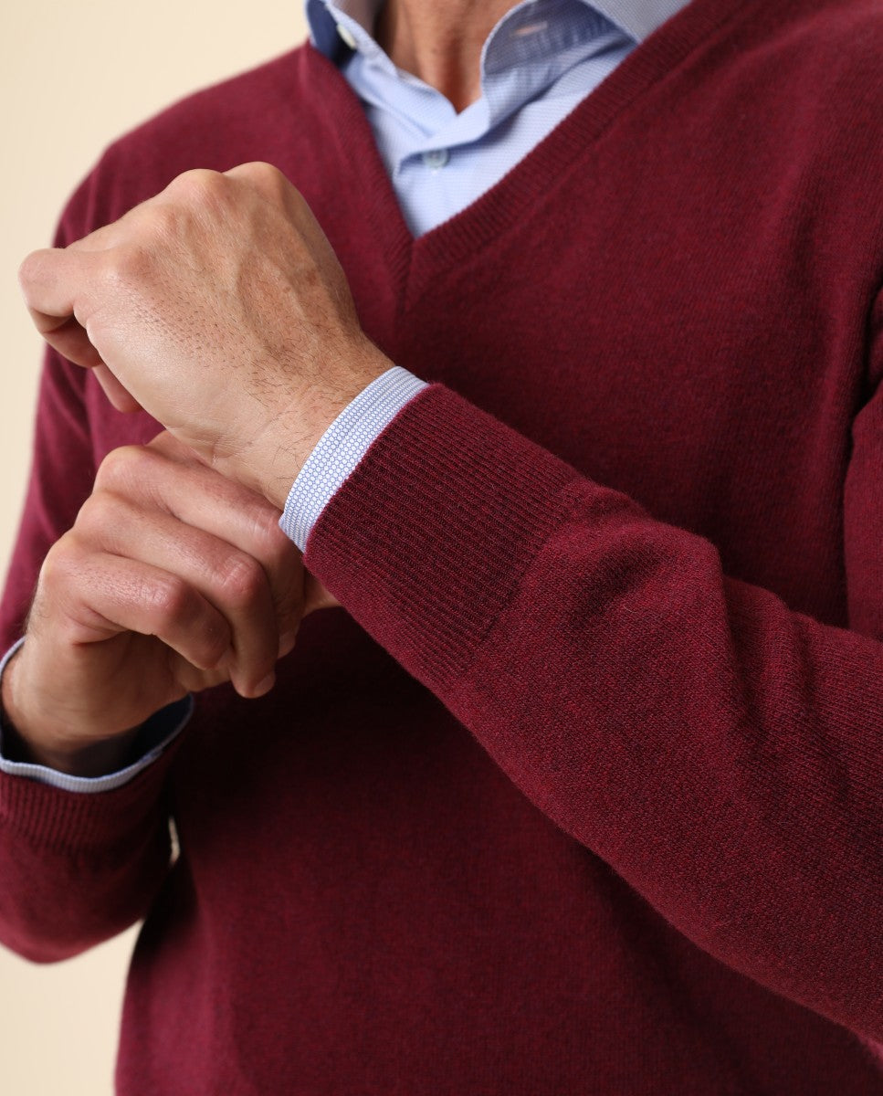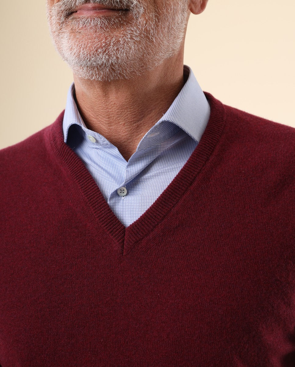 Camisola Decote em V 100% Lã em Bordeaux Escuro