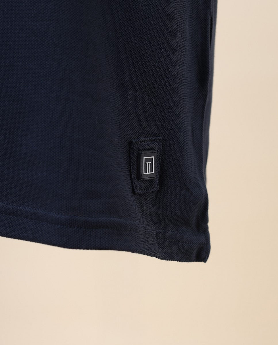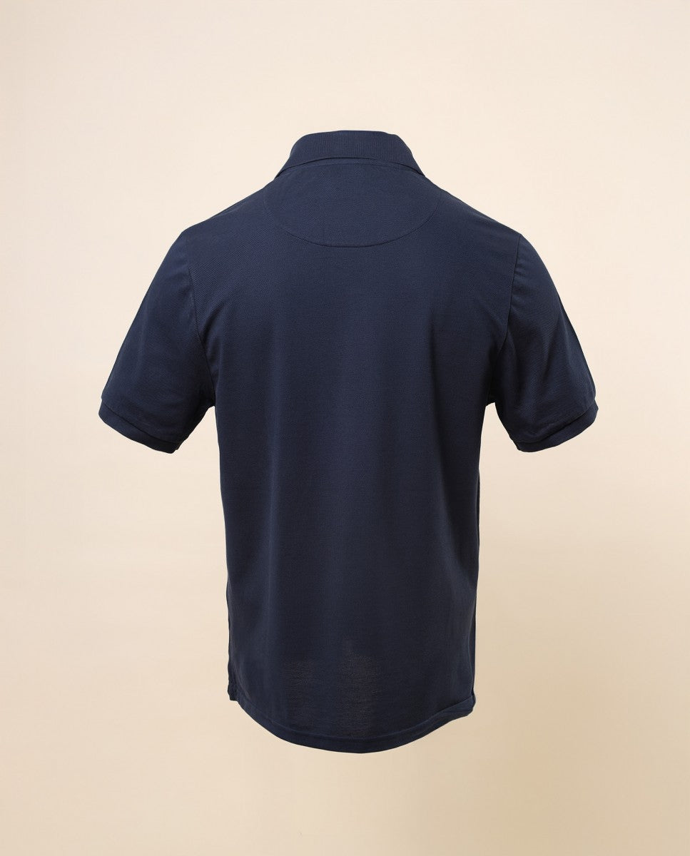 Polo Piquet Manga Curta 100% Algodão em Azul Escuro