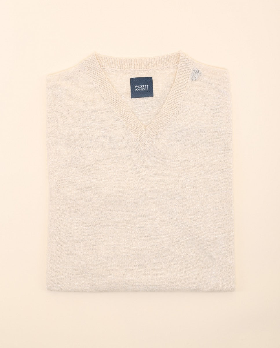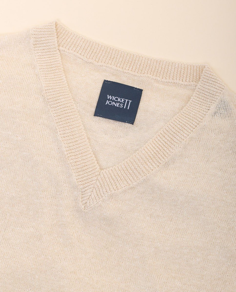 Camisa Casual de Malha 100% Linho em Bege Claro