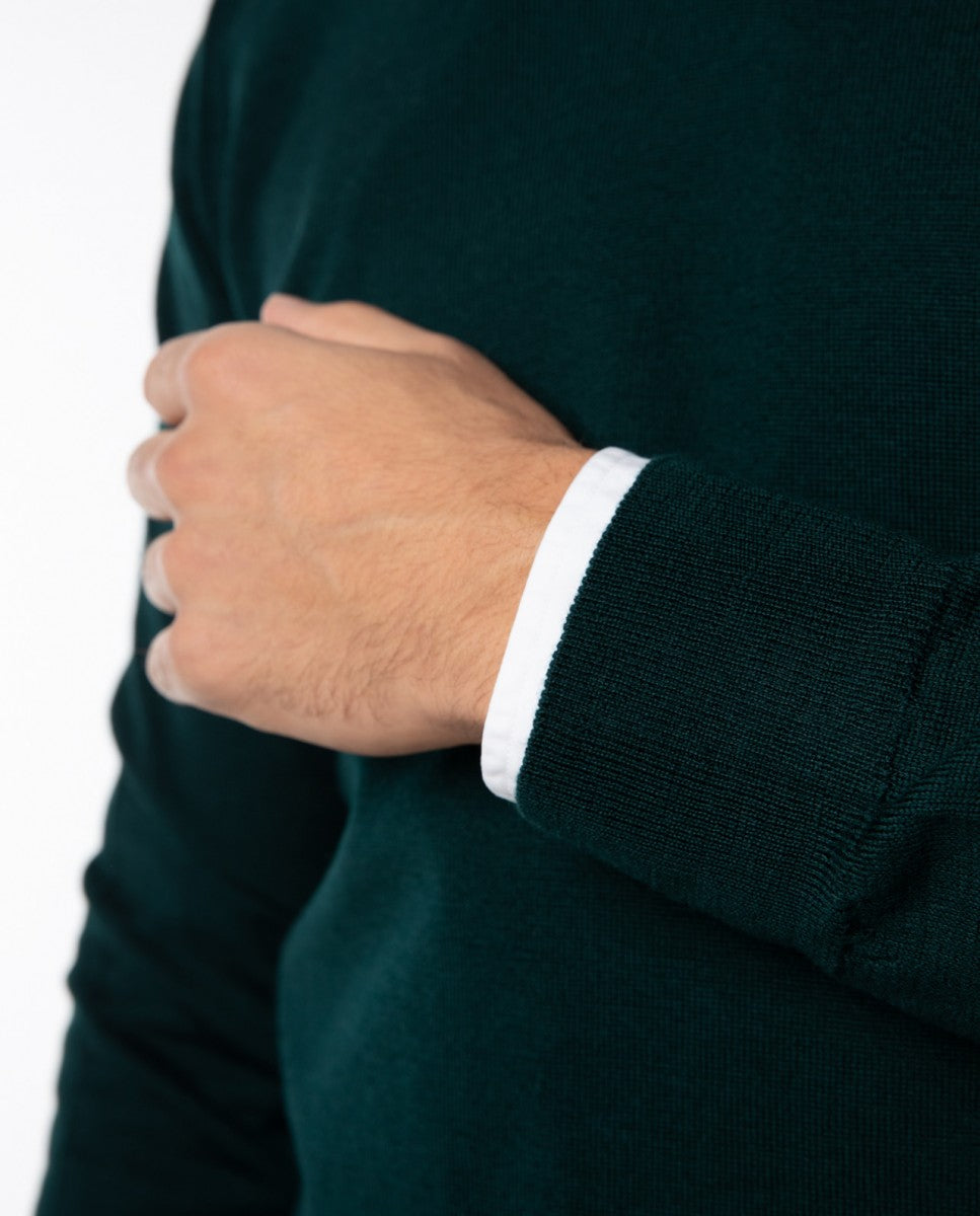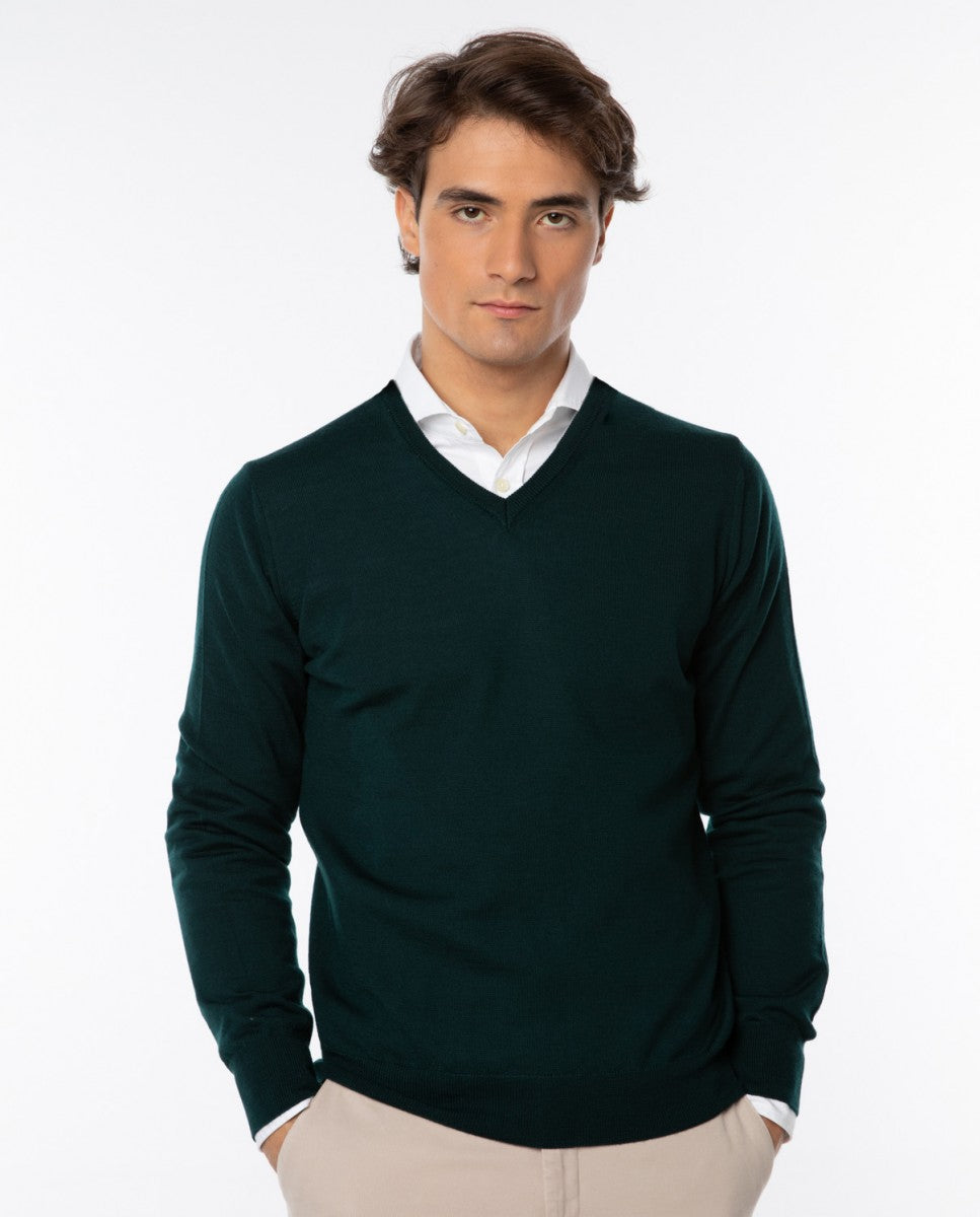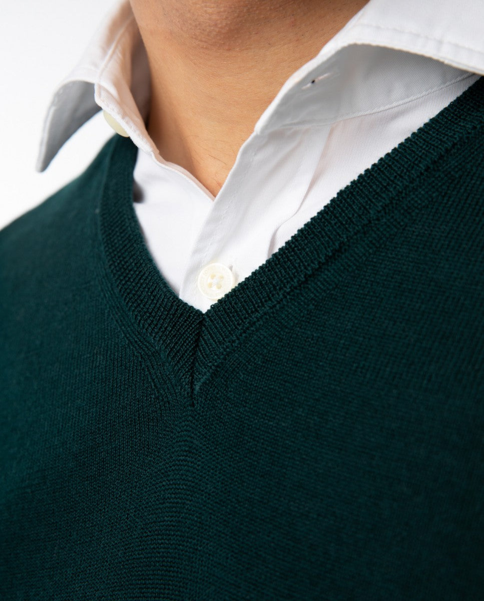 Dark Green V Neck Sweater 100% Merino Wool