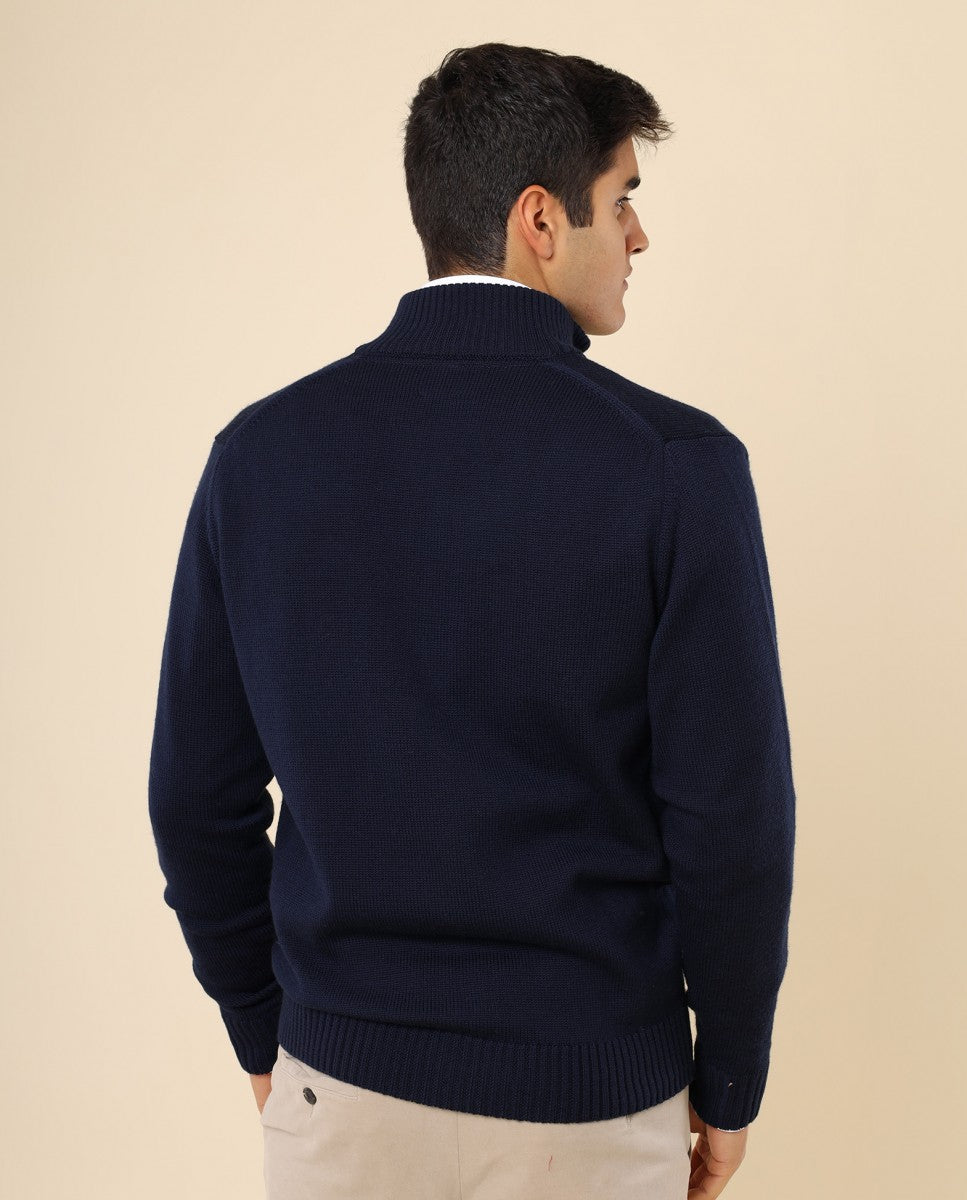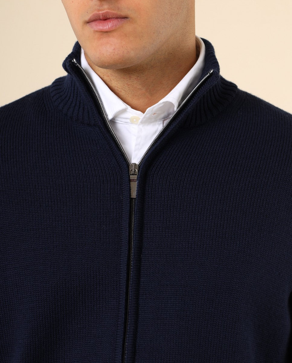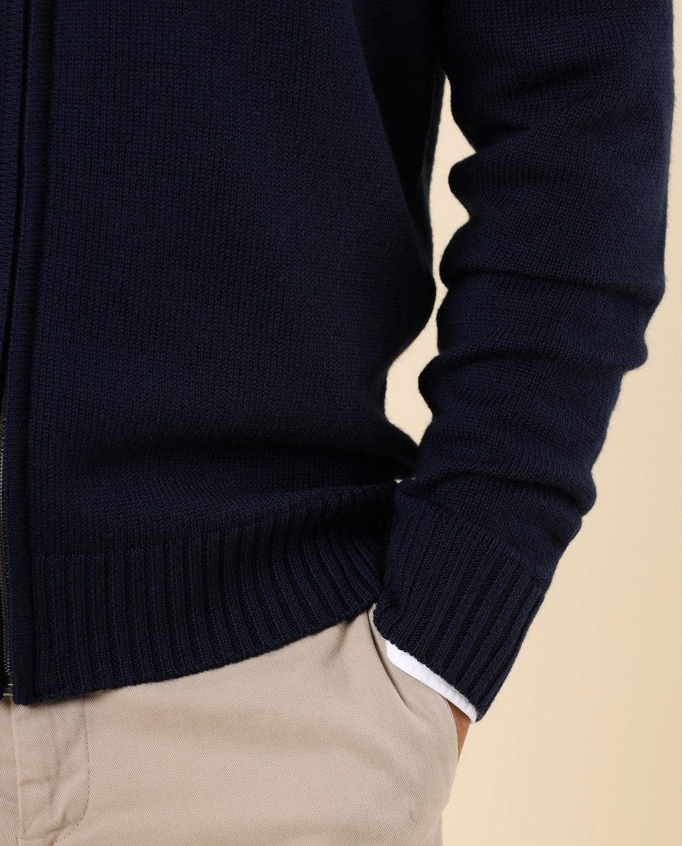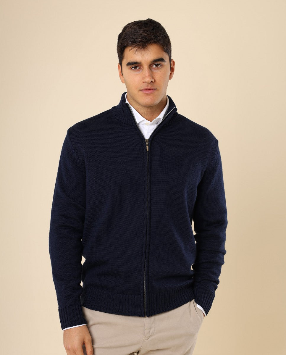 Casaco de Malha 100% Lã Merino em Azul Escuro