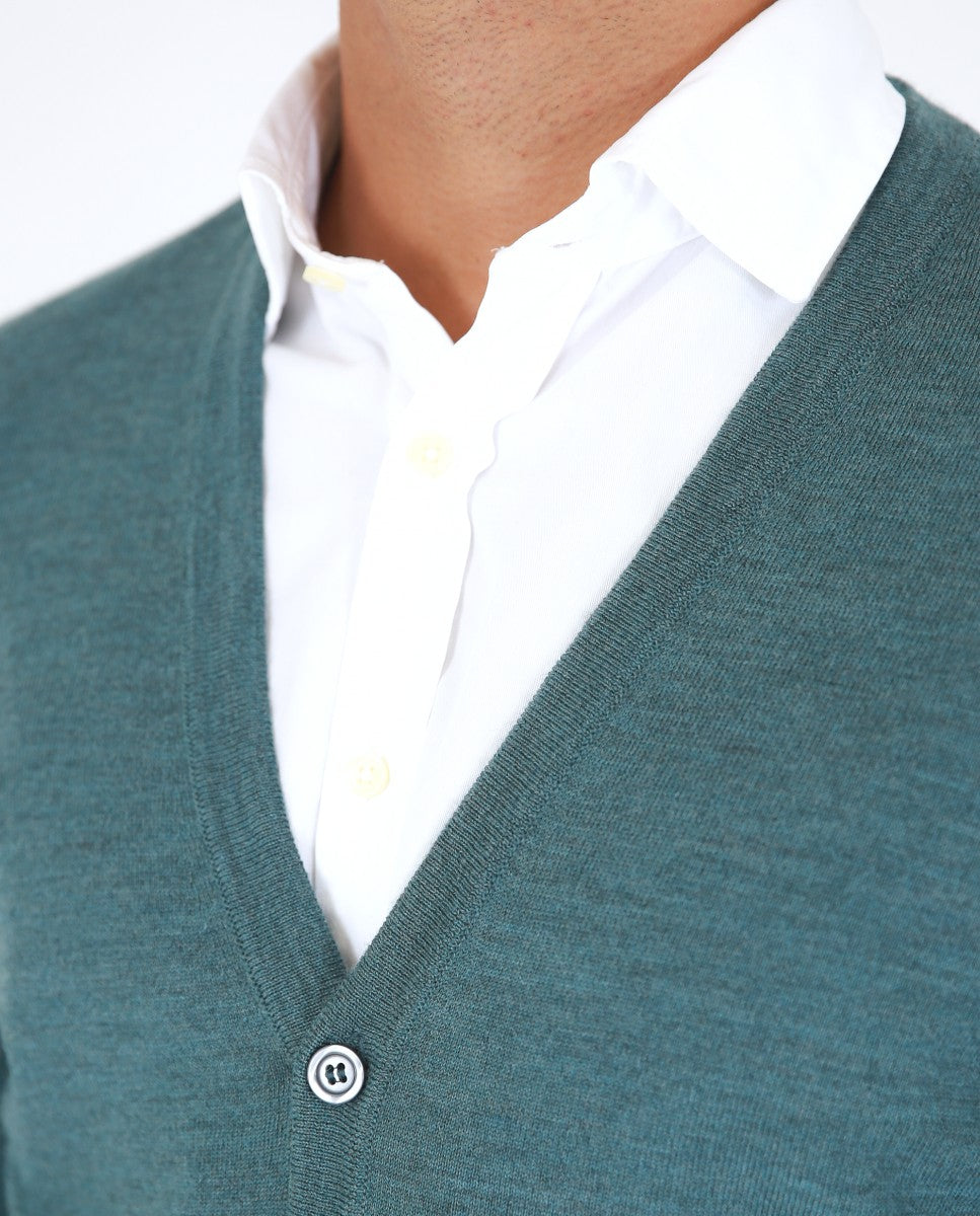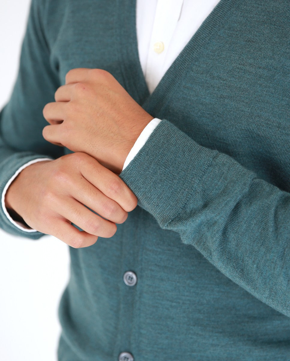 Chaqueta de Punto 100% Lana Merino en Verde Petróleo